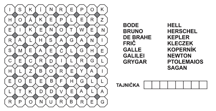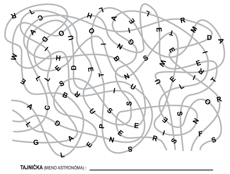 Vyškrtajte písmená uvedených slávnych astronómov. Zvyšné písmená správne poskladajte do tajničky.