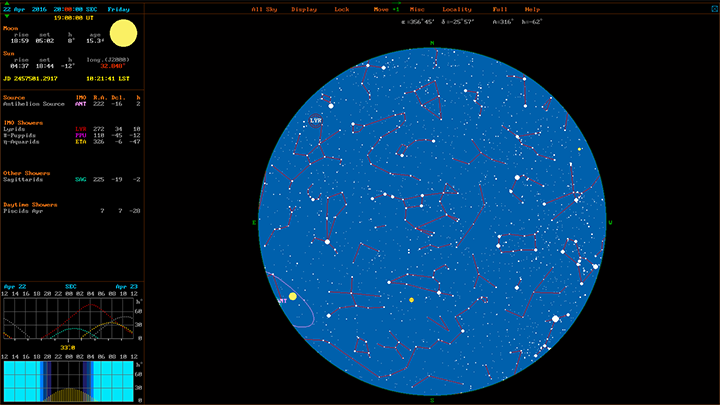 Simulátor hviezdnej oblohy s množstvom prídavných funkcií pre dobrú orientáciu na oblohe v zadanom čase. Podporuje tvorbu vlastného obzoru, animáciu, zobrazuje radianty meteorických rojov. Obsahuje katalóg SAO s hviezdami do desiatej magnitúdy, Messierov katalóg a polohy niektorých význačnejších objektov.